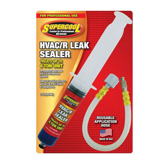 SUPERCOOL HVAC/R LEAK STOP SYRINGE 2OZ IN CLAMSHELL WITH QUICK CONNECT INSTALLATION HOSE